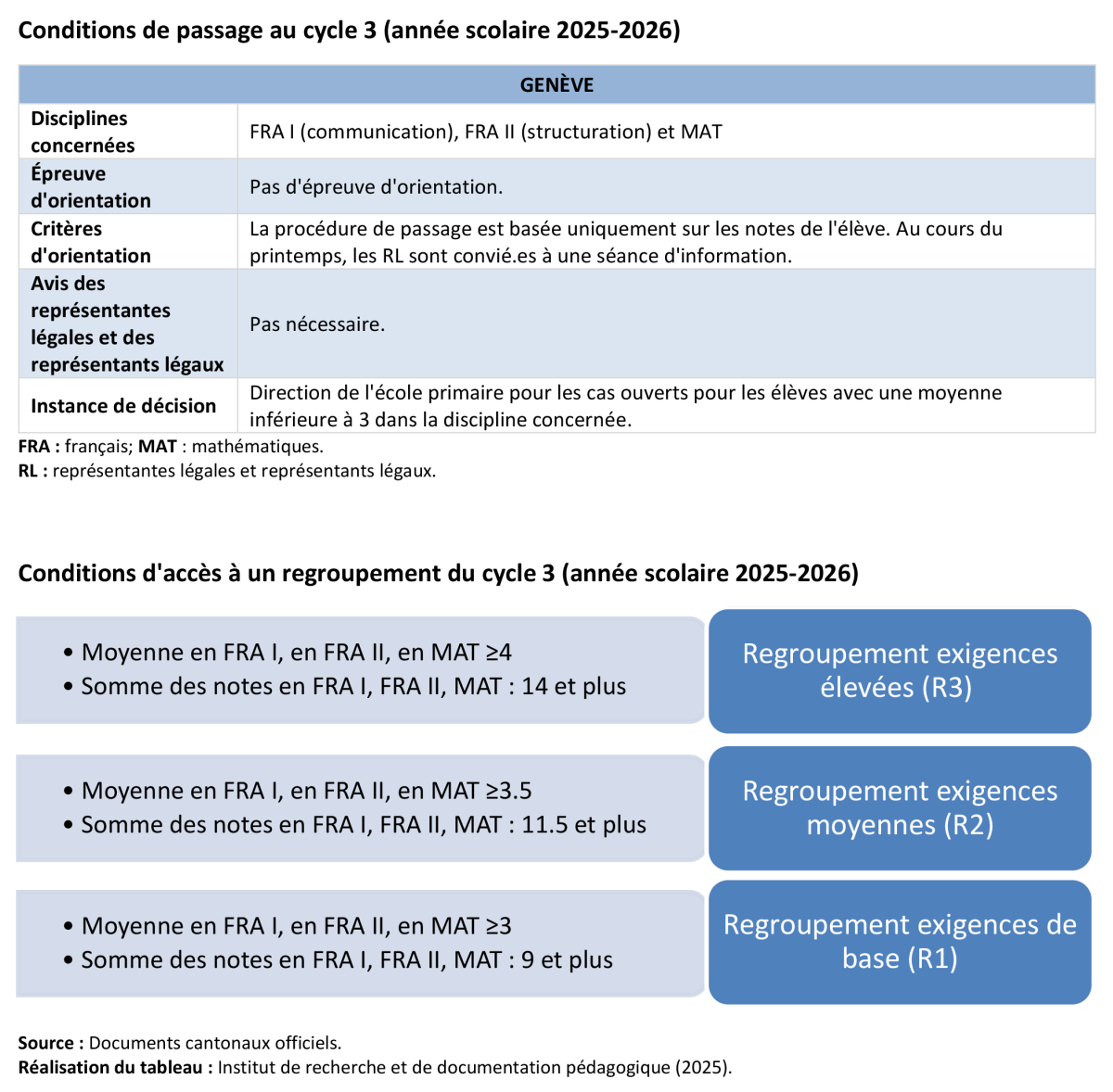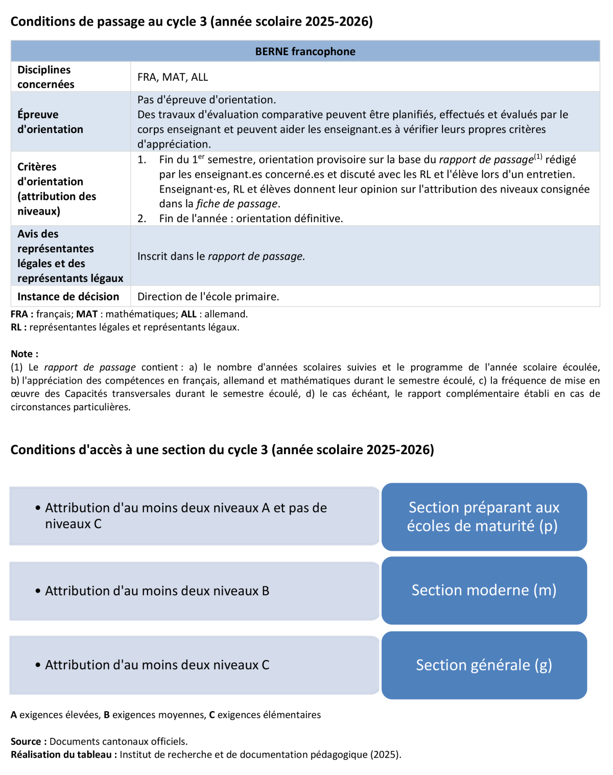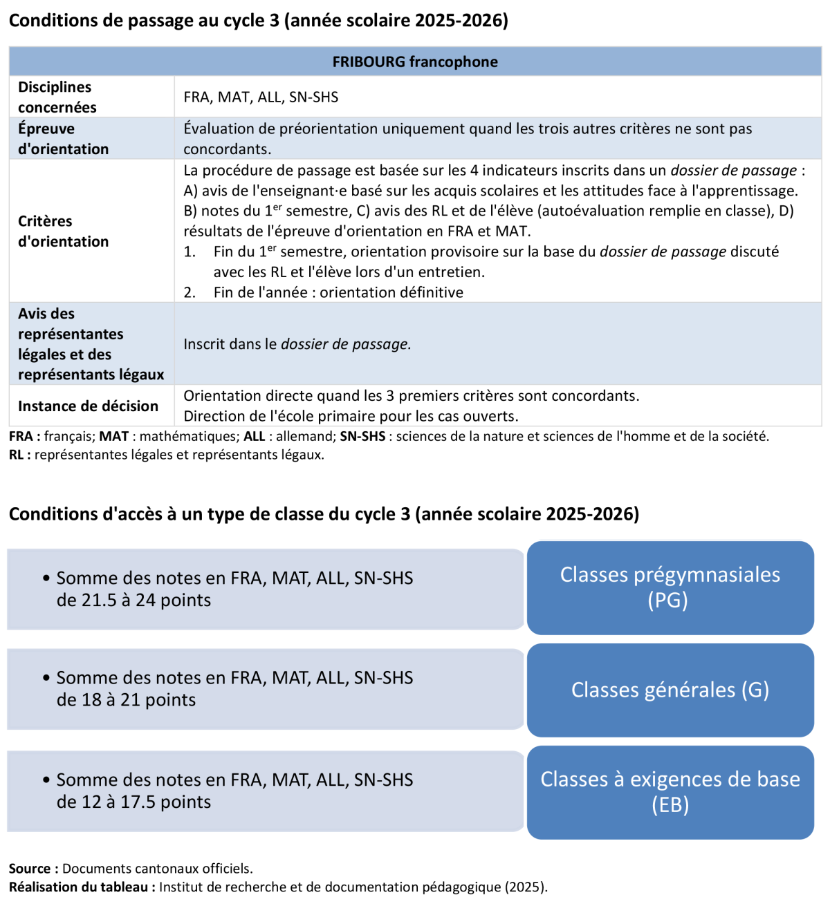 Les conditions de passage entre le cycle 2 et le cycle 3 sont fixées par les cantons.