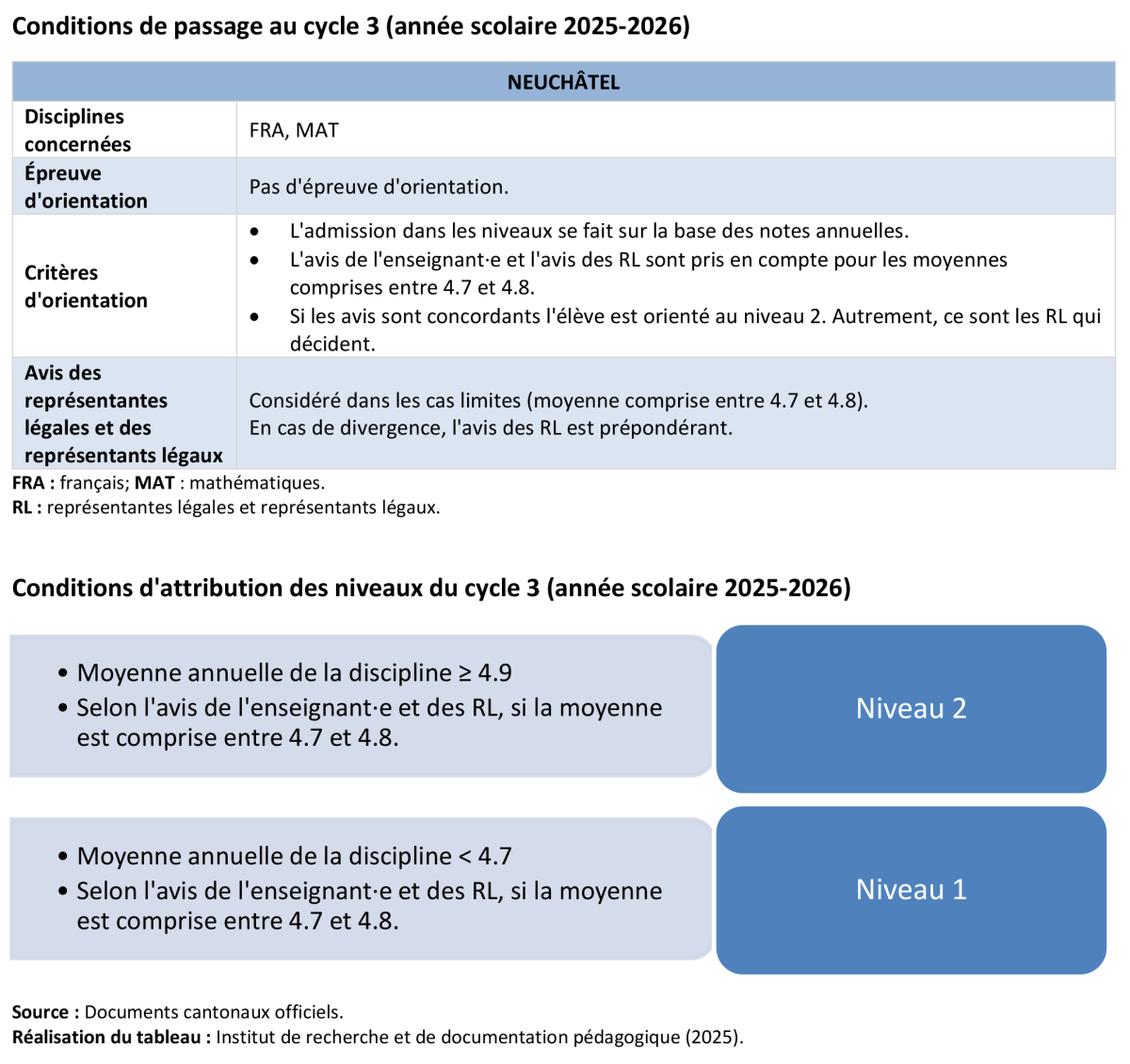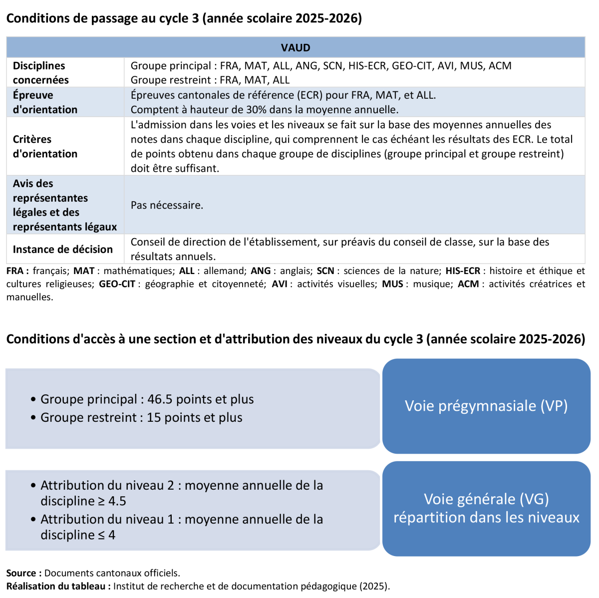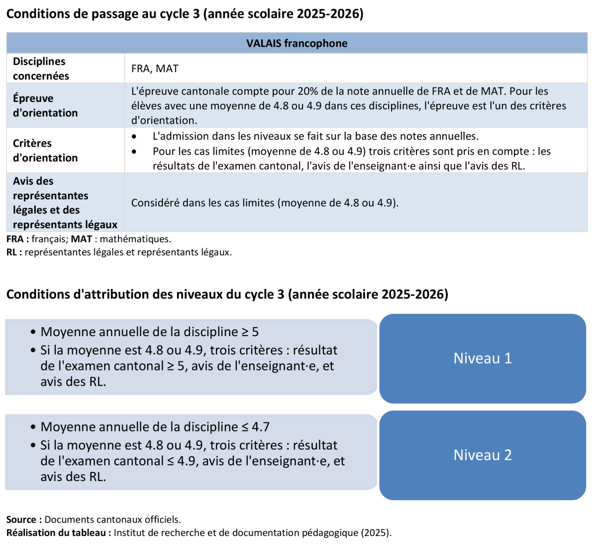 Les conditions de passage entre le cycle 2 et le cycle 3 sont fixées par les cantons.